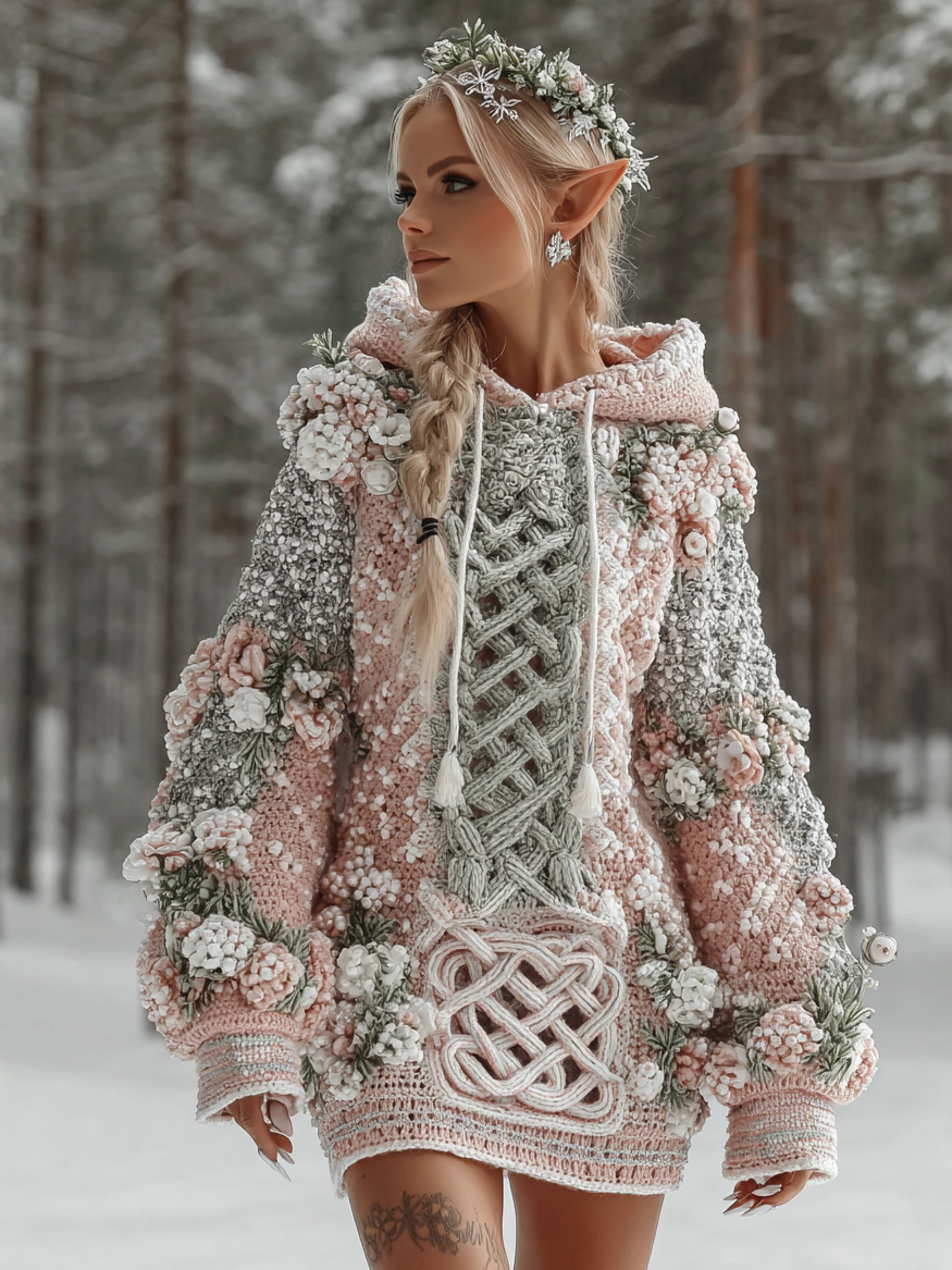 Women's Floral Celtic Knot Midi Sweater Dress