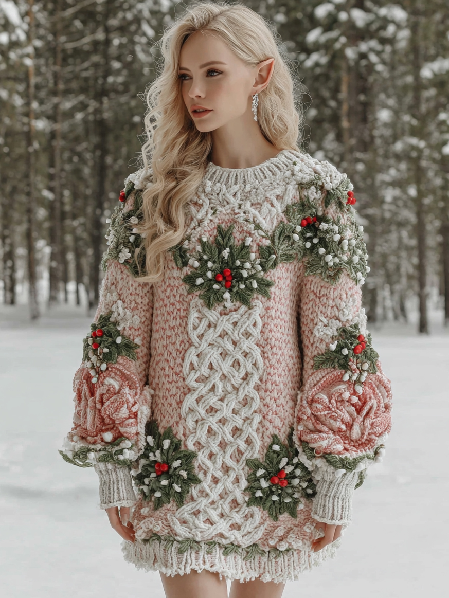Women's Christmas Holly Berry Celtic Knot Midi Sweater Dress